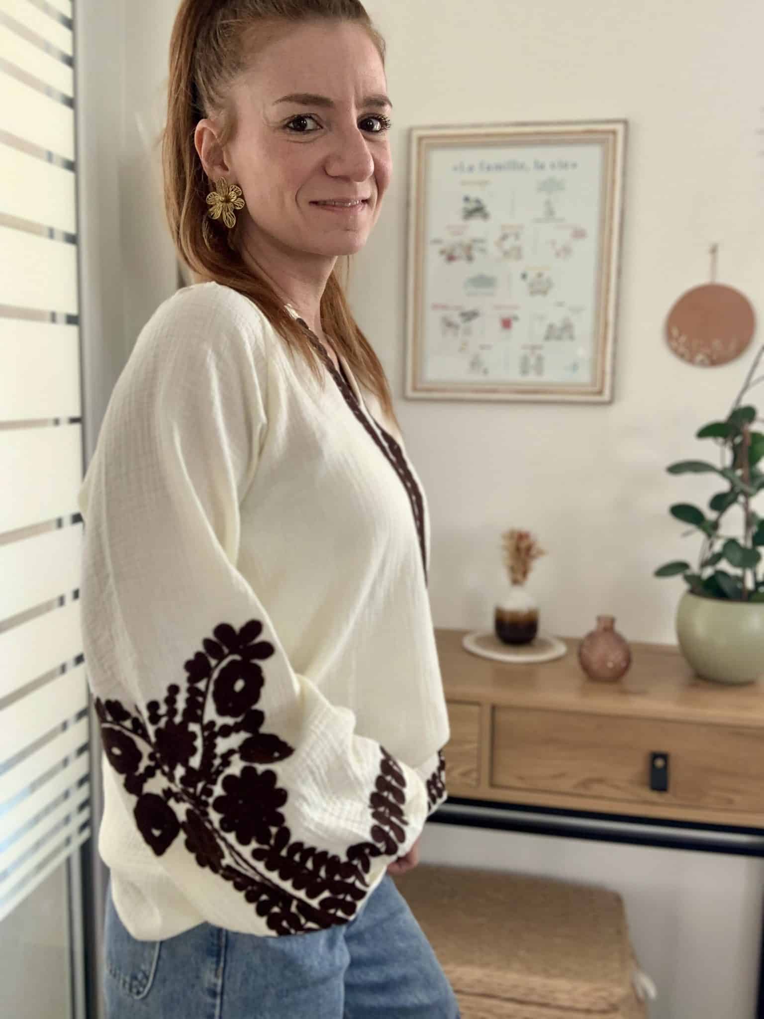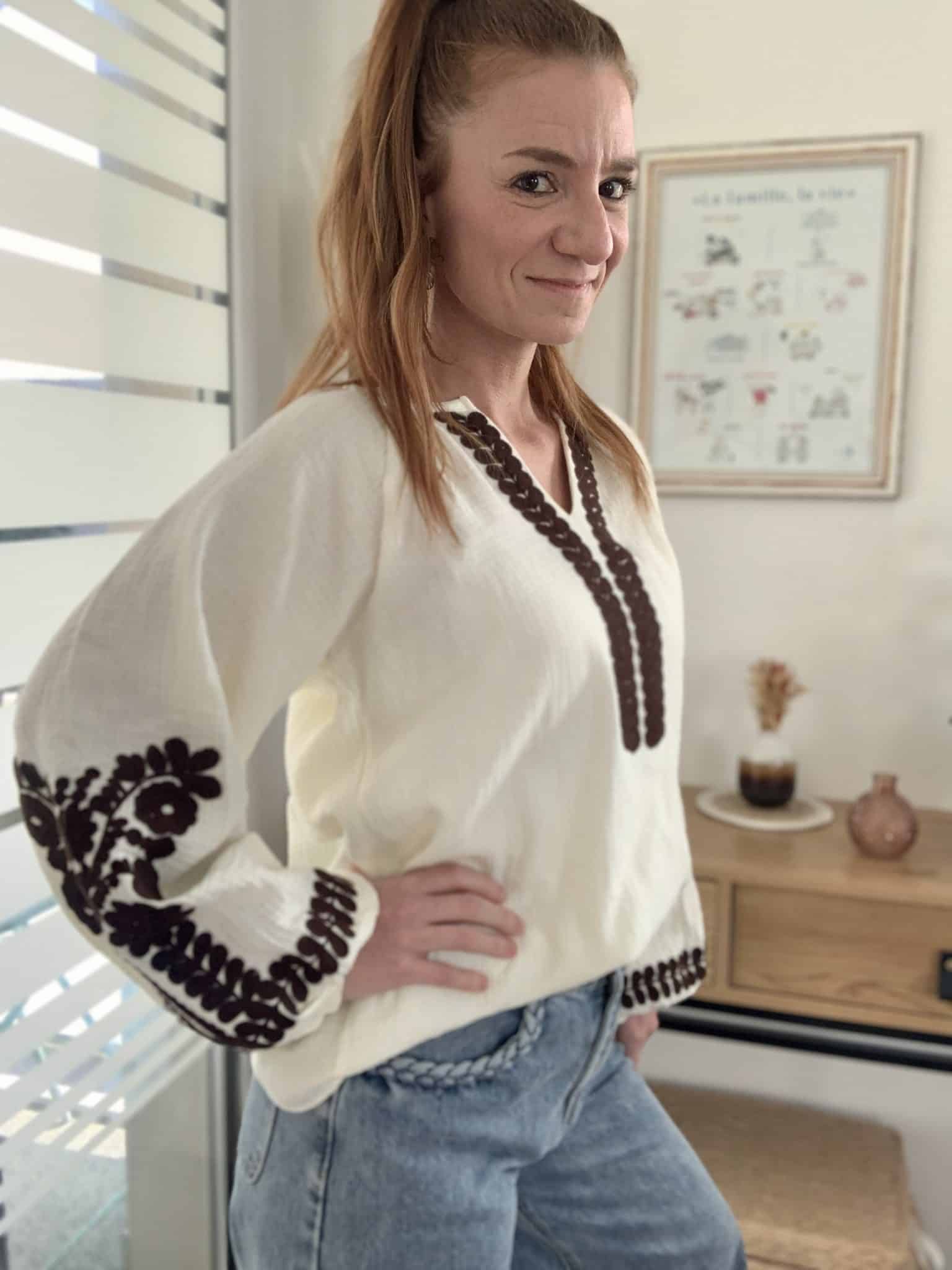 Blouse brodée bohème chic femme coton léger style artisanal