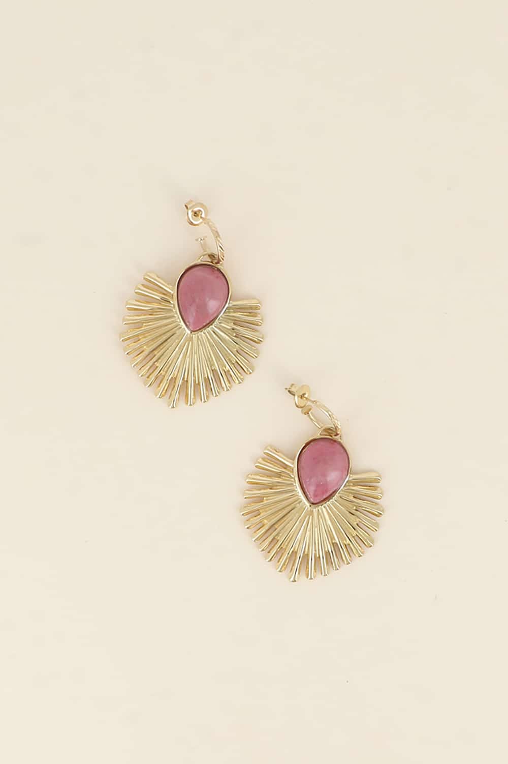 Les boucles d’oreilles Cléo séduisent par leur design solaire et leur pierre naturelle. Une pièce bohème chic lumineuse qui attire tous les regards.