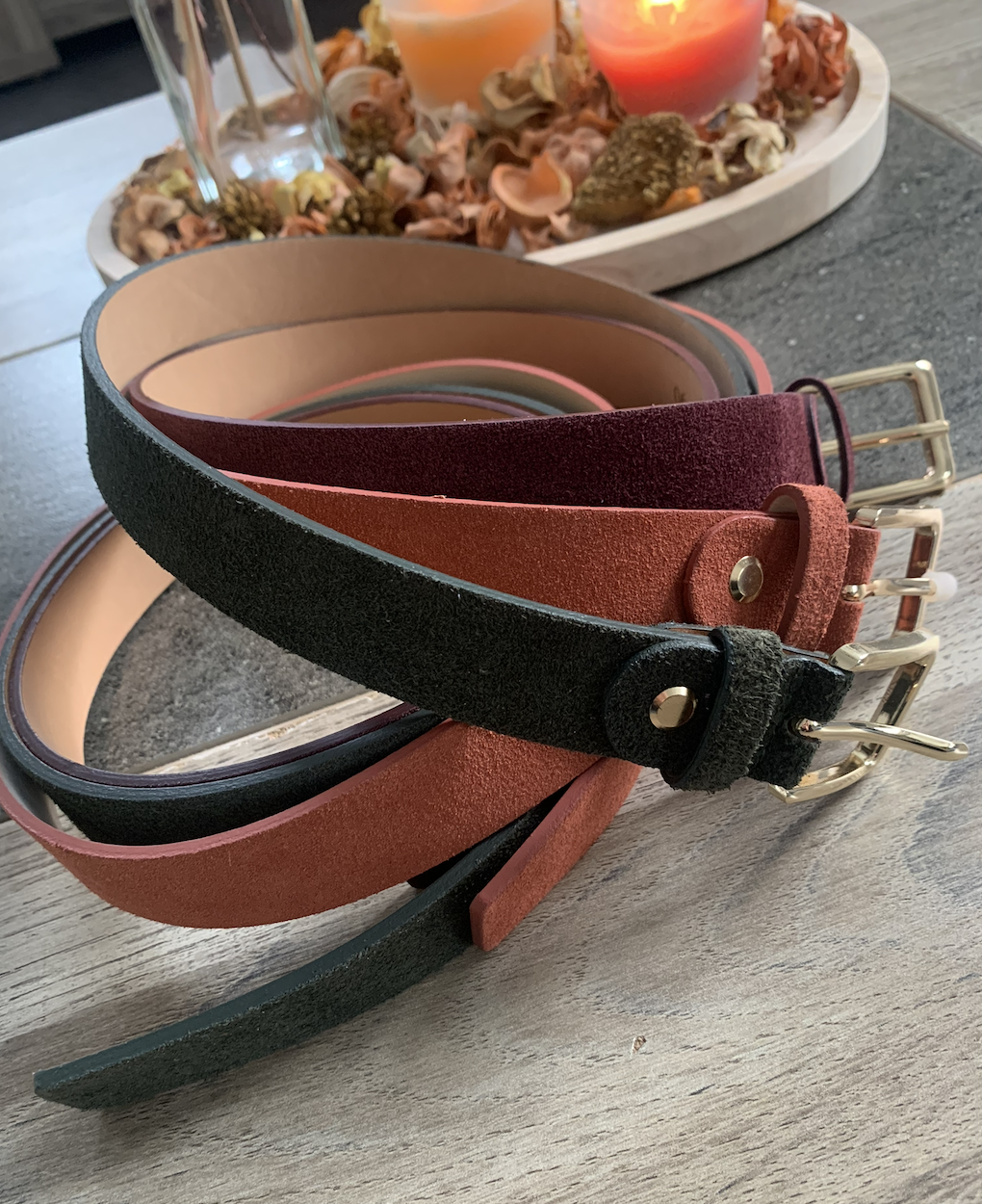 Disponible en trois coloris chaleureux – bordeaux, rouille et kaki – la ceinture Maëlle accompagne toutes les saisons avec style.