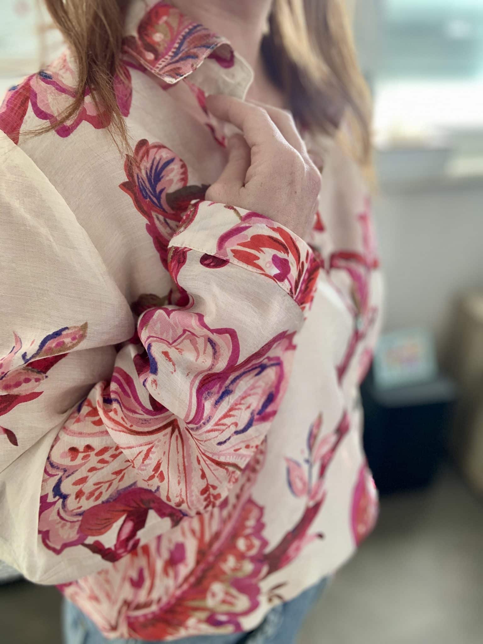 La chemise Capucine incarne une féminité lumineuse et naturelle. Son imprimé floral délicat apporte fraîcheur et douceur à la silhouette tout en conservant une élégance intemporelle.