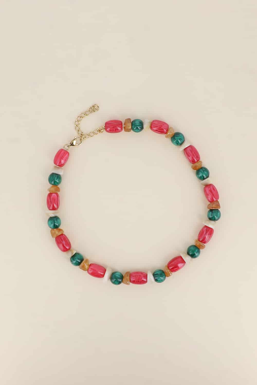 Le collier Luma incarne une féminité solaire et expressive. Composé de perles en résine aux teintes vibrantes, il apporte instantanément de la couleur et du caractère à la silhouette.