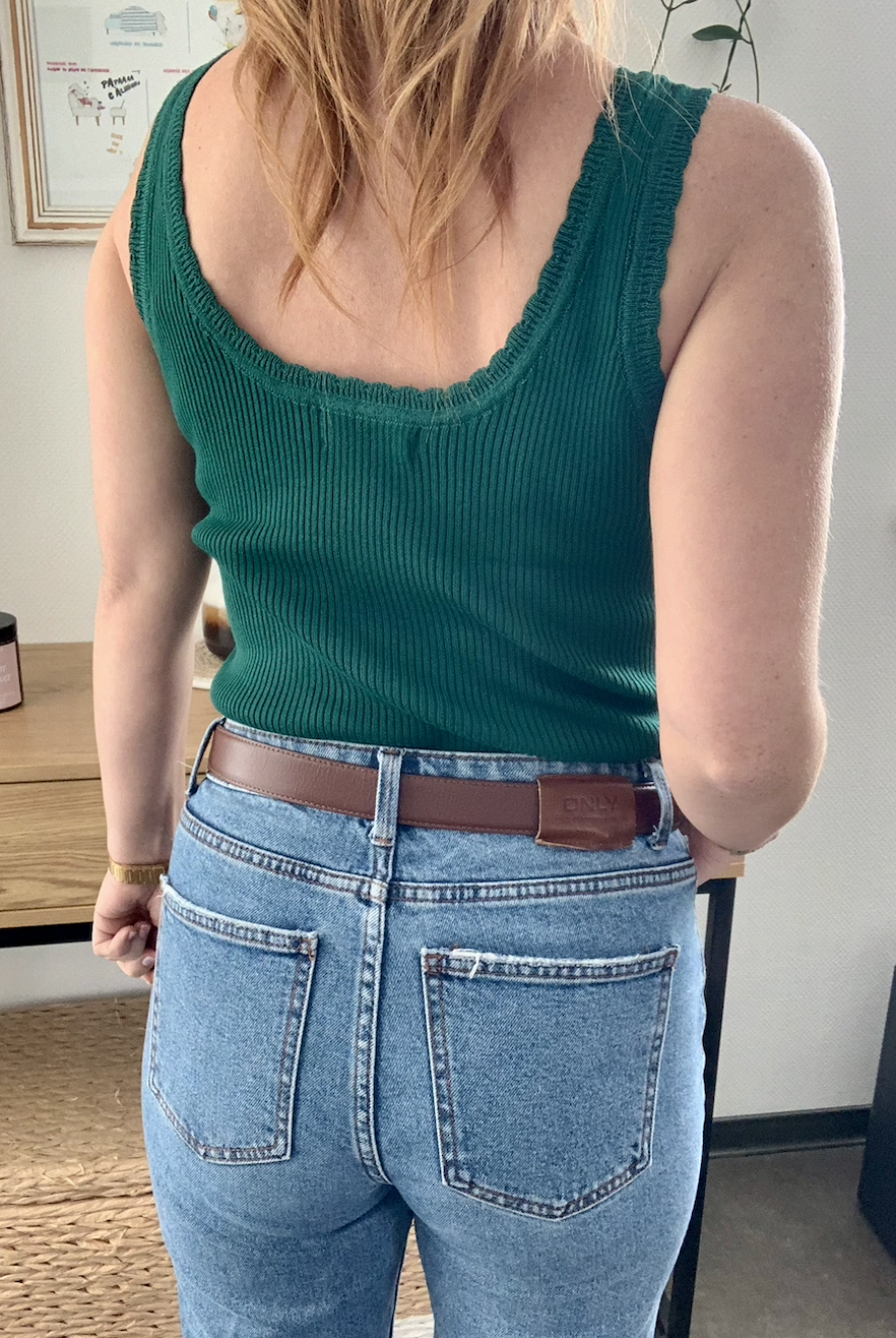 Son encolure carrée et ses fines bretelles apportent une touche féminine et raffinée, idéale pour les beaux jours comme pour les superpositions de mi-saison.
